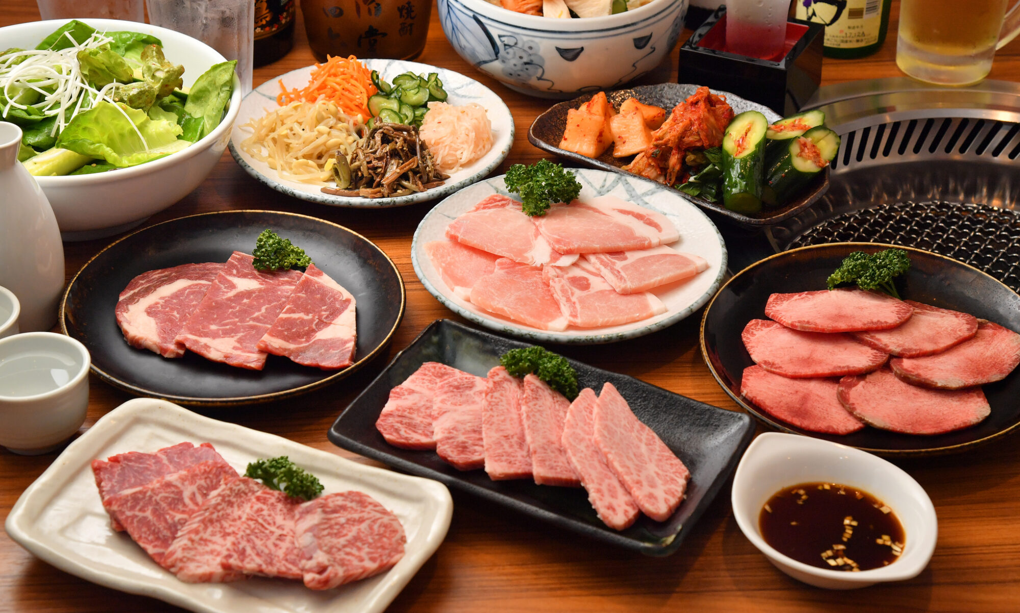 名物の「肉の壺漬け」はぜひ一度ご賞味いただきたい自慢の逸品。カルビをはじめ、種類豊富なお肉をご用意しています。ドリンクメニューも充実しており、飲み放題プランもございますので、居酒屋としてのご利用にもぴったりです。